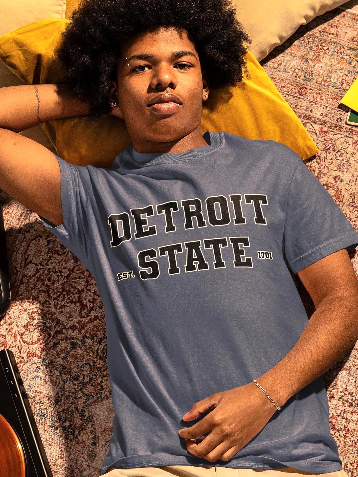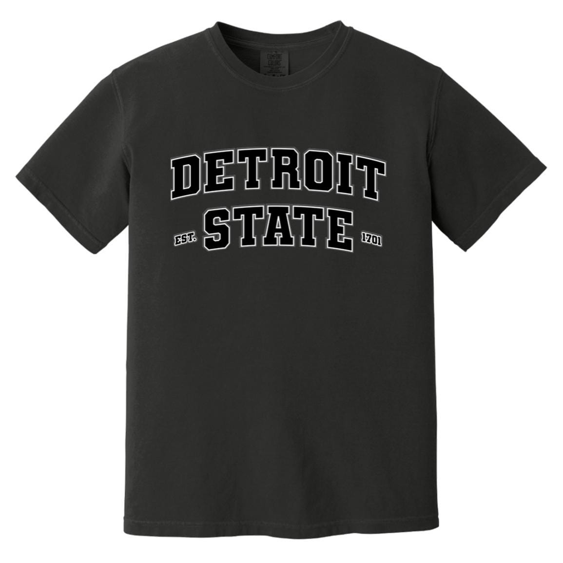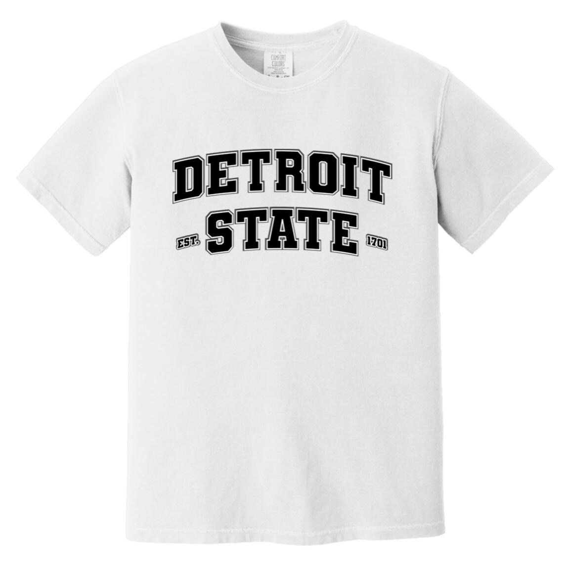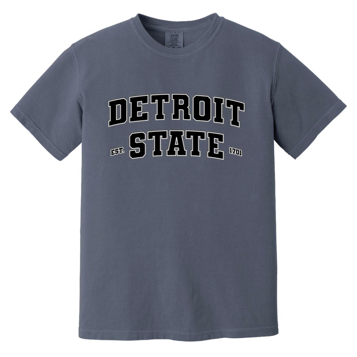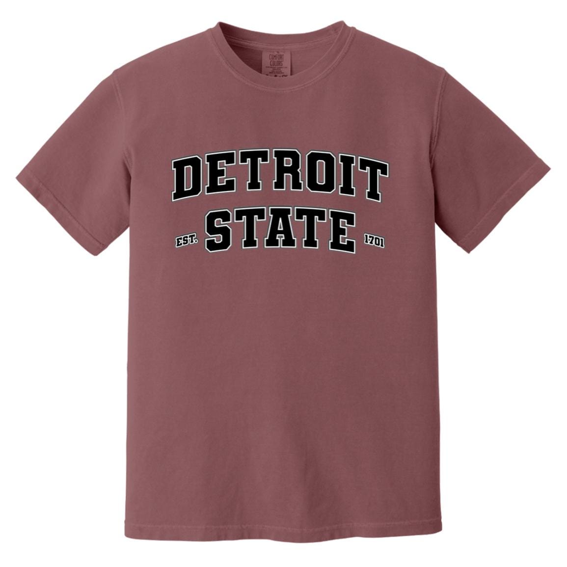 Detroit State T-Shirt | Comfort Colors® Edition.: 6.1 oz., 100% ring spun USA cotton.: Preshrunk, soft-washed, garment-dyed fabric.: Relaxed fit & Sewn-in Twill Label.: Print Method: DIGISOFT®.: detroit crewneck-gift.: detroit crewneck-gift