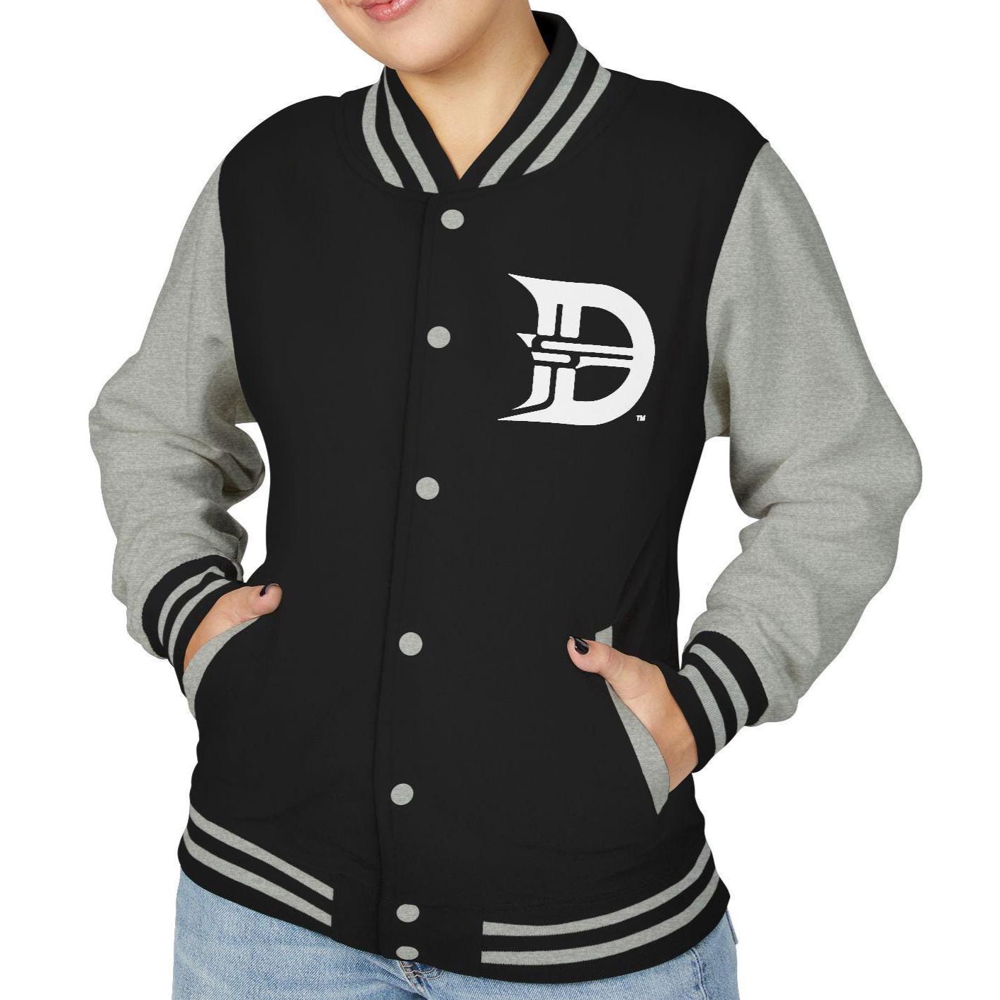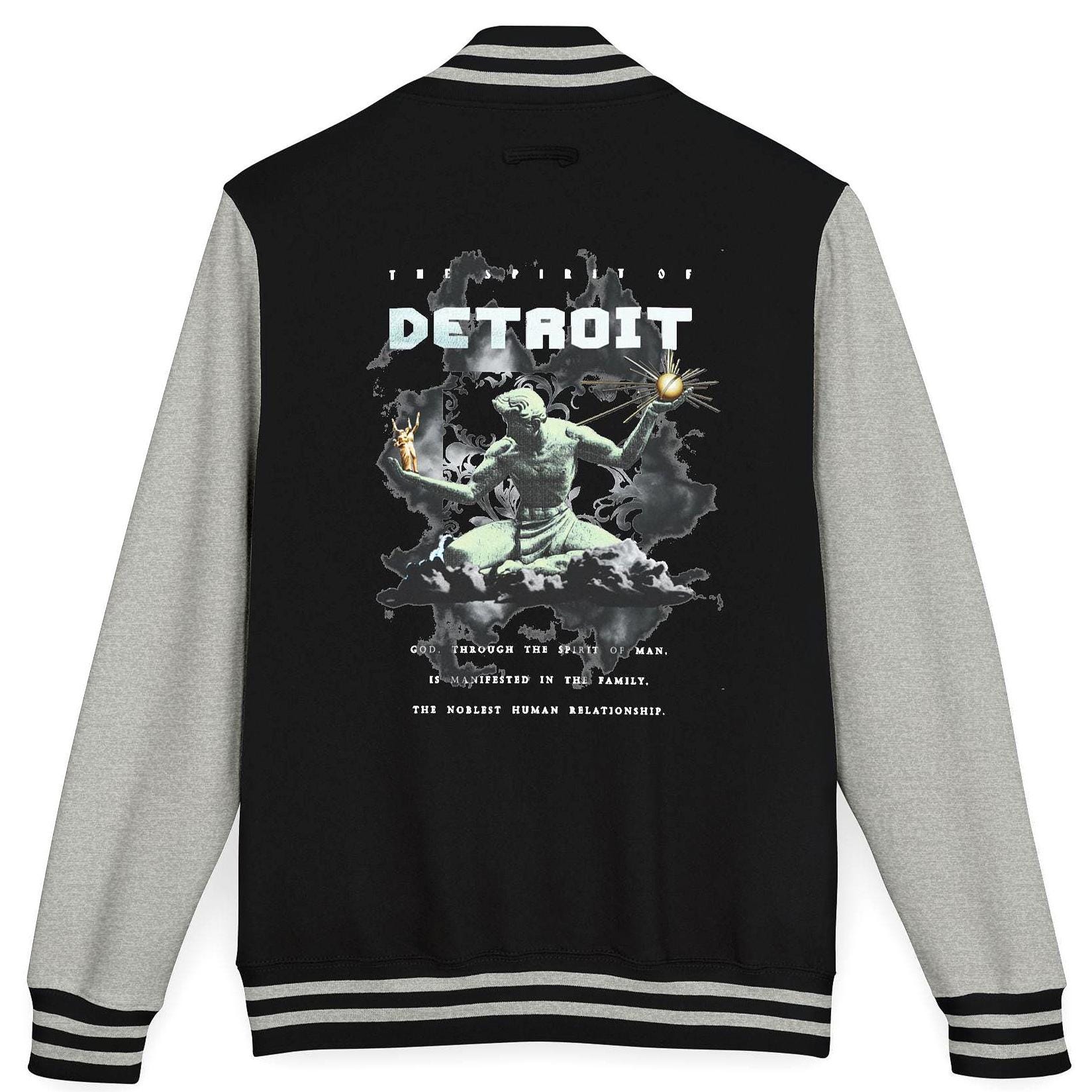 Spirit of Detroit Varsity Jacket.: 9-ounce, 65/35 ring spun combed cotton/poly.: 2x2 rib knit collar, cuffs & waistband.: Snap front closure; Front slash pockets.: Print Method: DIGISOFT®