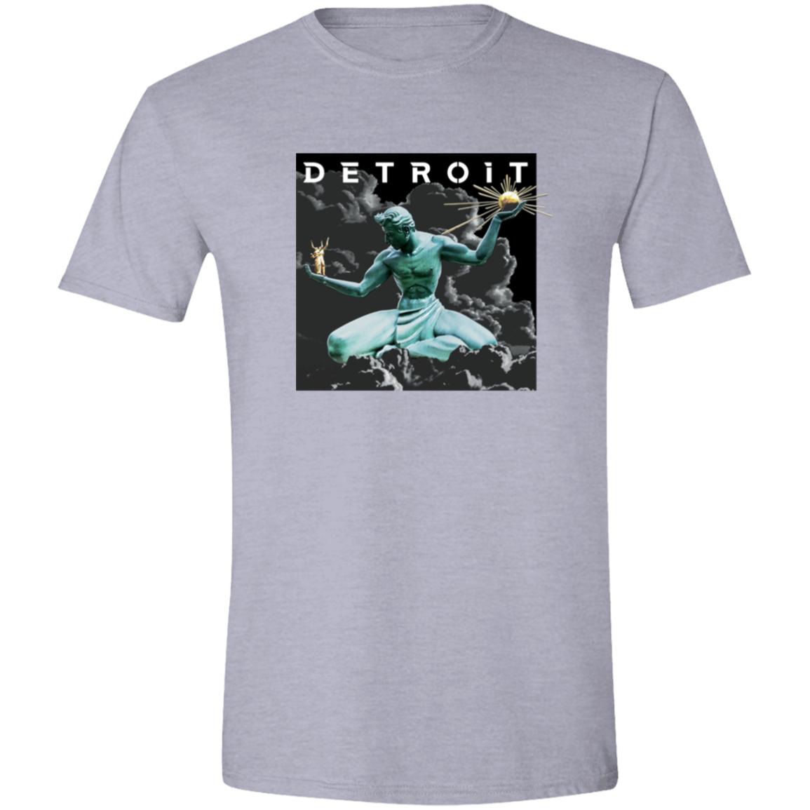 DETROIT STATE™ DESIGN AND APPAREL.: 4.5-ounce, 100% ring spun US cotton.: 90/10 ring spun cotton/poly (Antique Colors and Sport Grey).: 65/35 poly/ring spun cotton (Heather Colors).: Modern classic fit, seamless body.: Print Method: DIGISOFT®