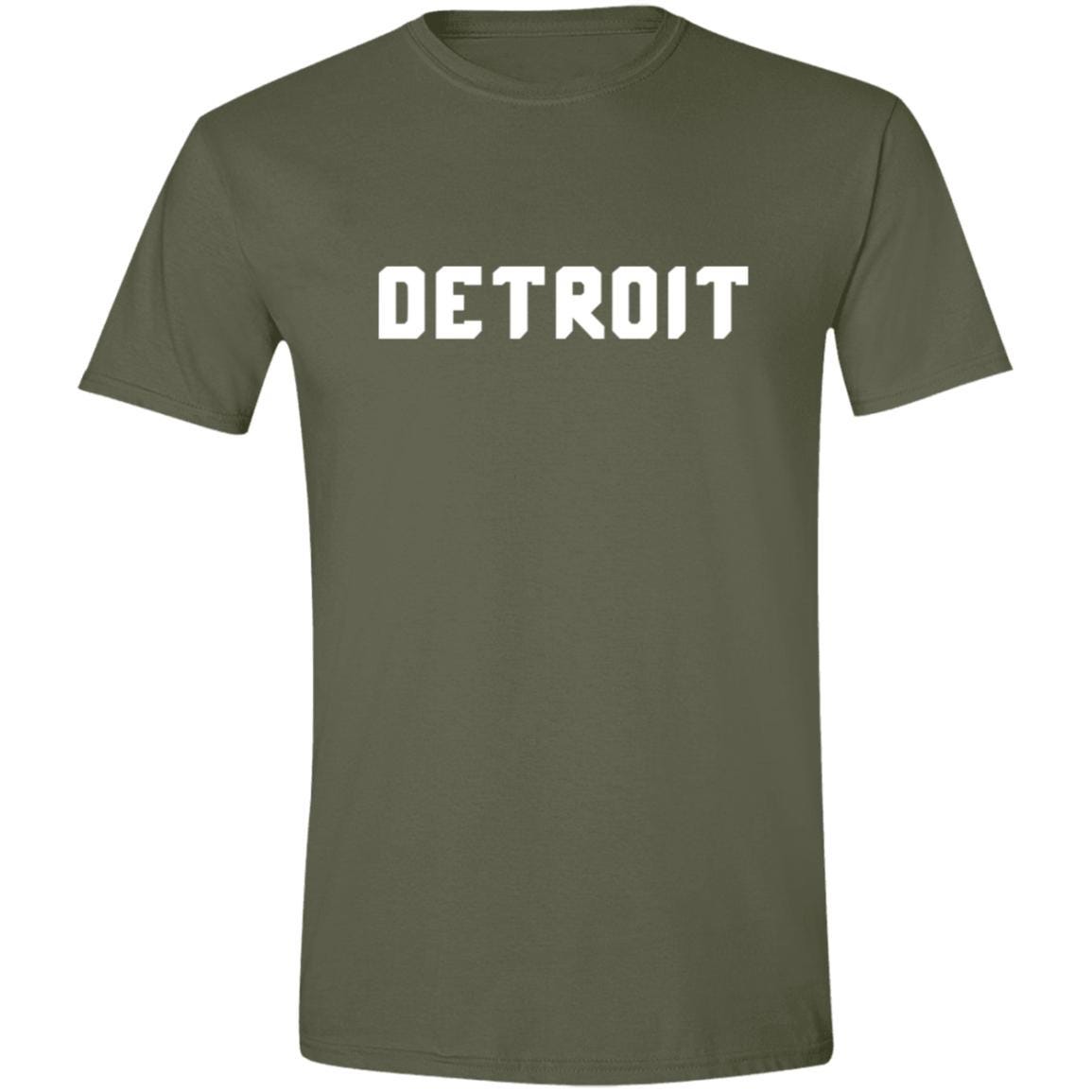 DETROIT STATE™ DESIGN AND APPAREL.: 4.5-ounce, 100% ring spun cotton.: 90/10 ring spun cotton/poly (Antique Colors and Sport Grey).: 65/35 poly/ring spun cotton (Heather Colors).: Modern classic fit, seamless body.: Print Method: DIGISOFT®