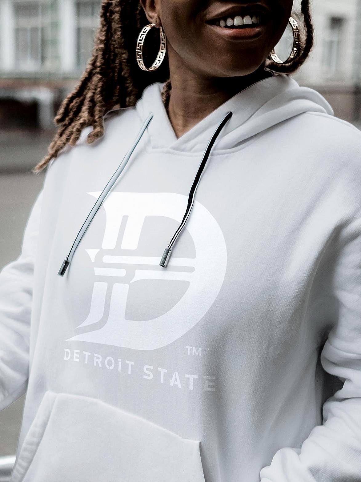 Detroit State™ Branded Premium Hoodie with white logo.