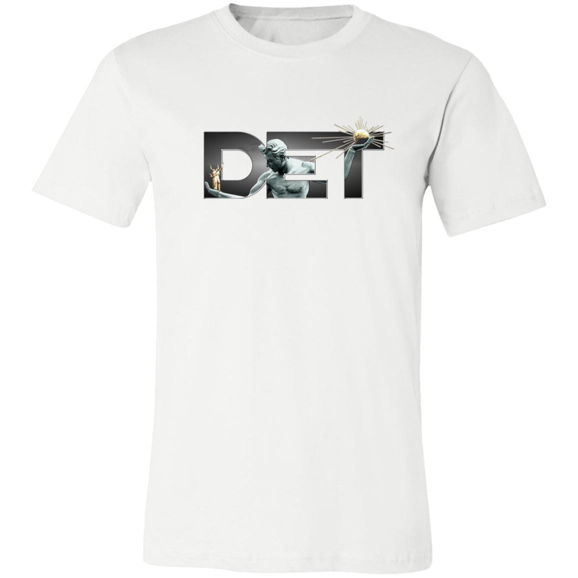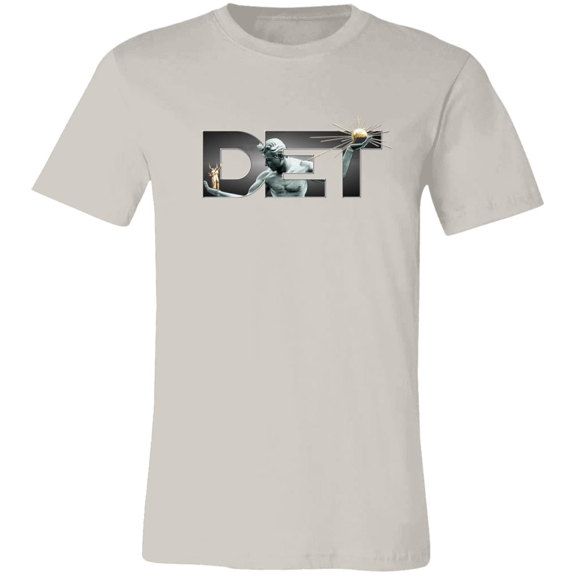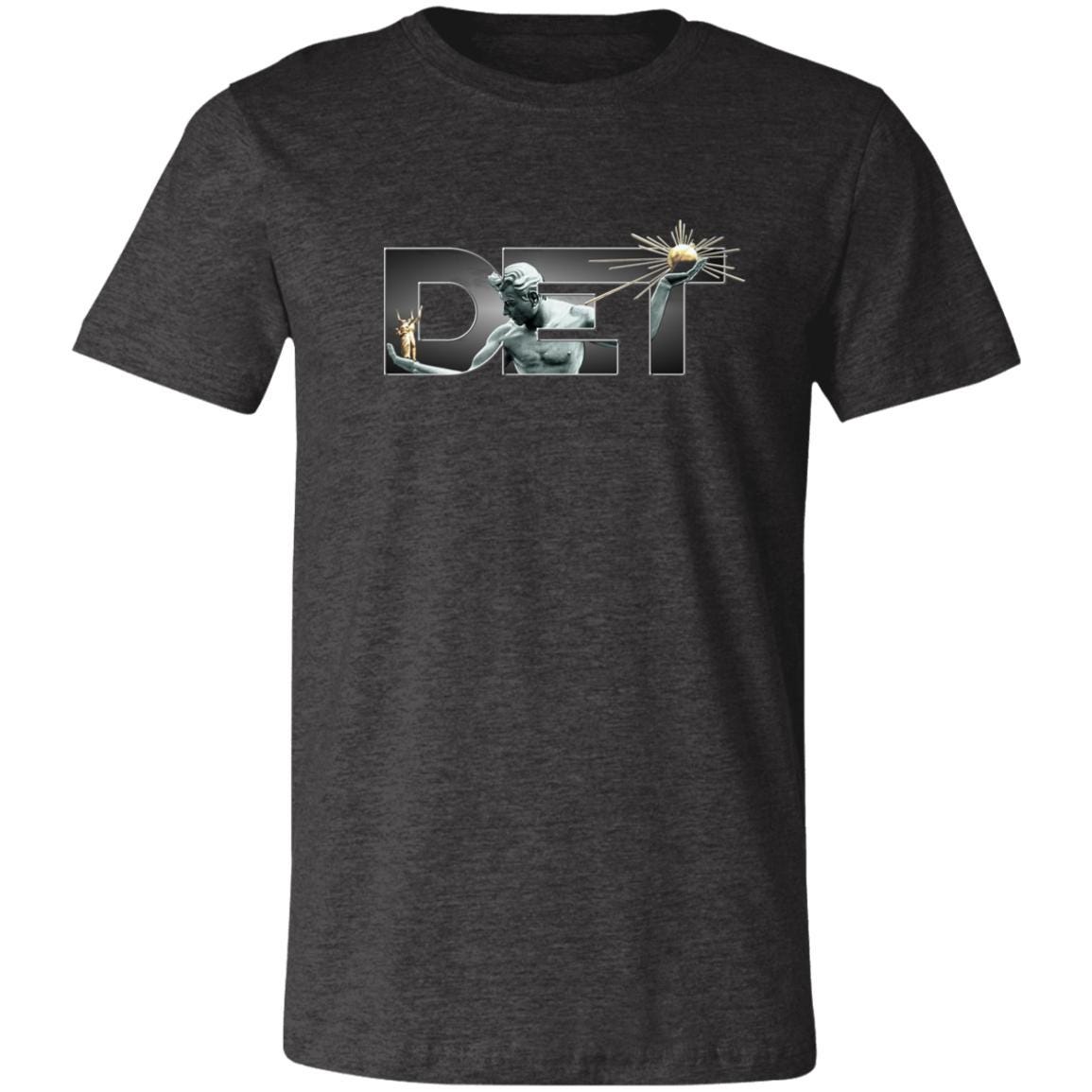 Detroit Spirit x DET T-Shirt - Detroit State™.: 4.2 oz., 100% combed and ringspun cotton.: Dark Grey Heather 52% combed and ring-spun cotton/48% polyester.: Taped shoulders Fitted at bicep.: Contoured slimmer fit