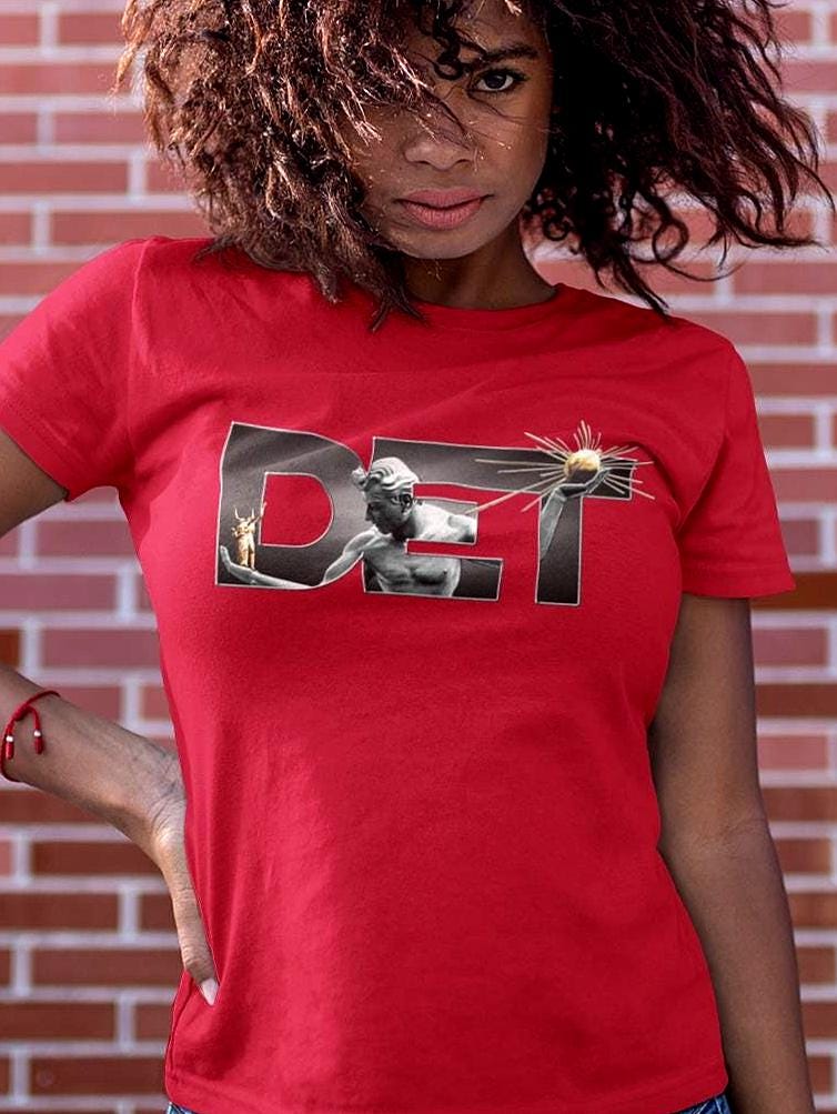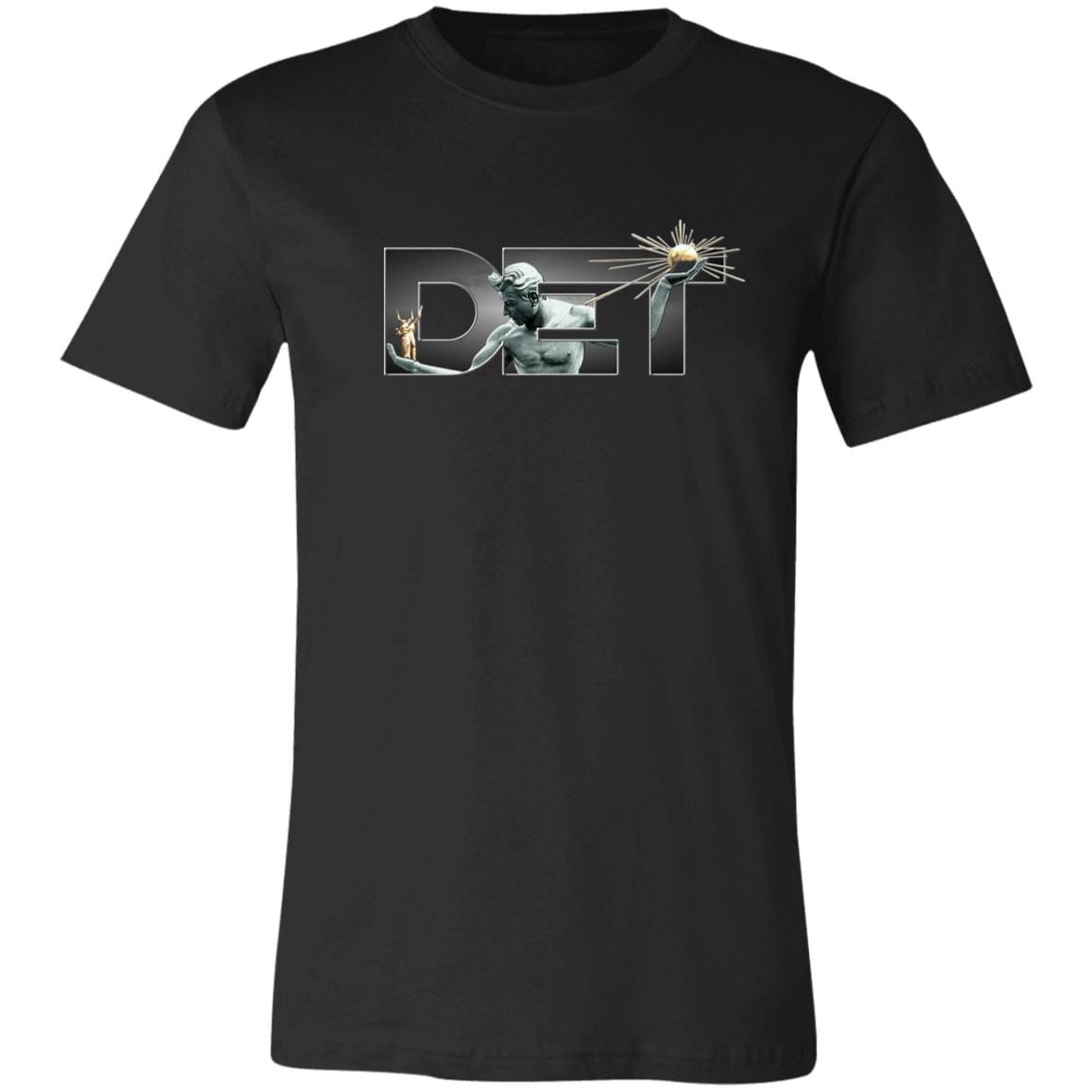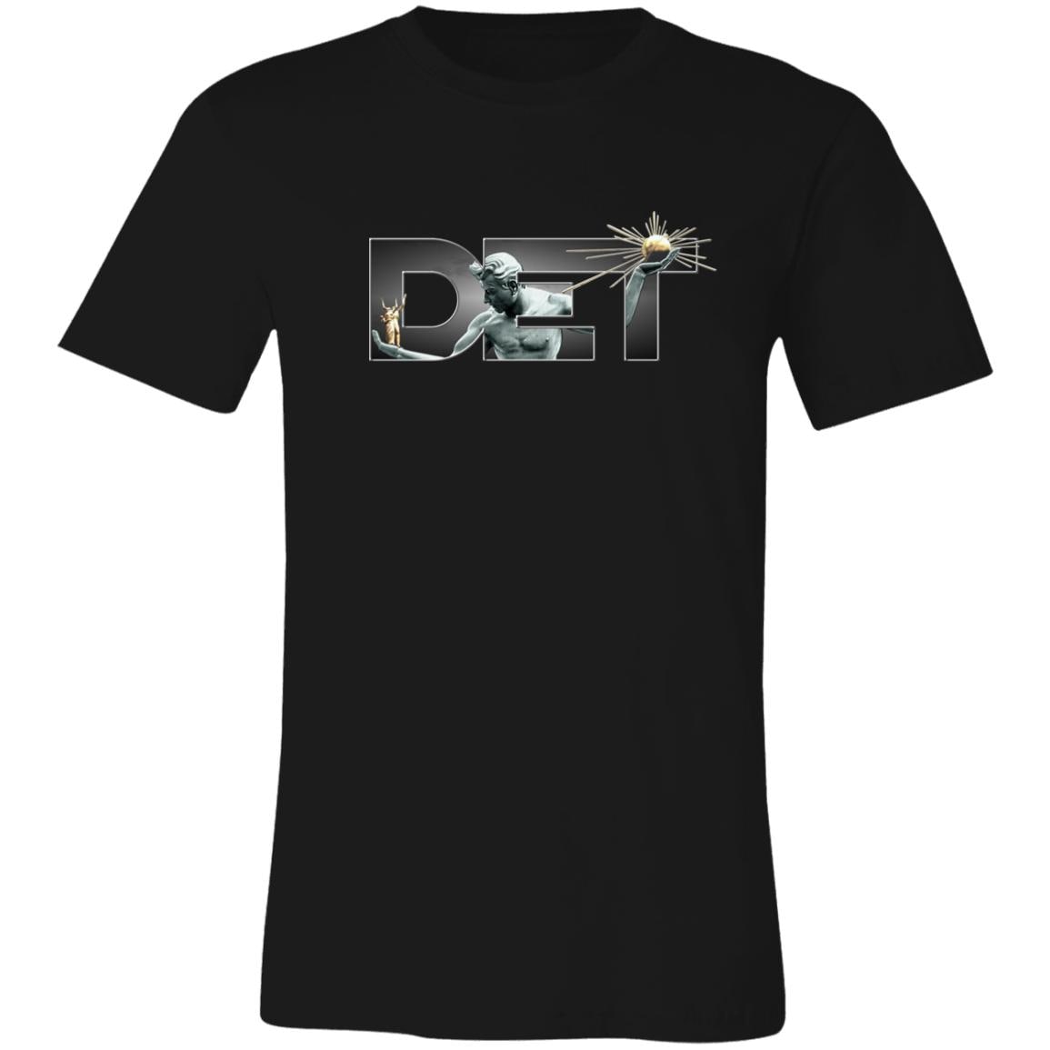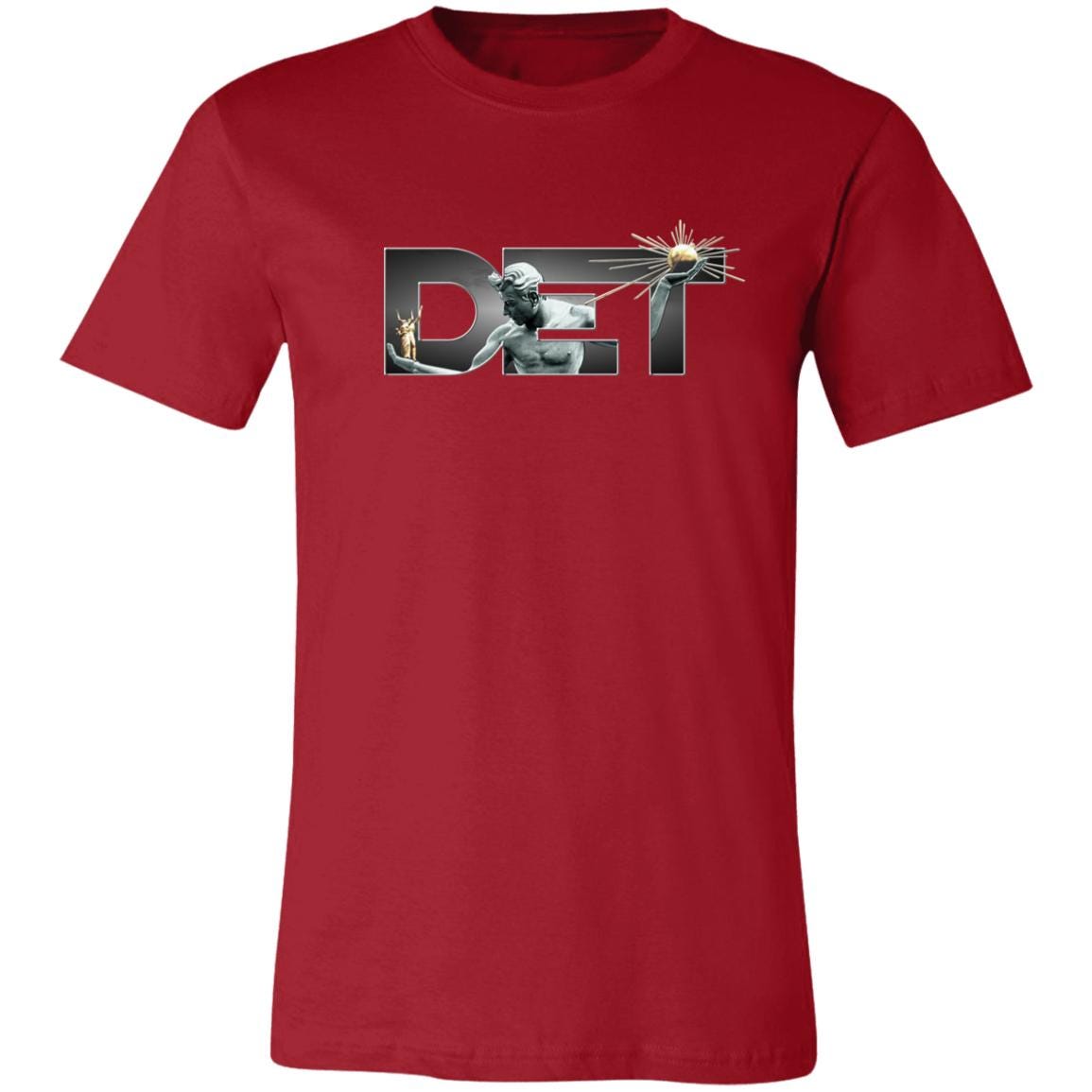 Detroit Spirit x DET T-Shirt - Detroit State™.: 4.2 oz., 100% combed and ringspun cotton.: Dark Grey Heather 52% combed and ring-spun cotton/48% polyester.: Taped shoulders Fitted at bicep.: Contoured slimmer fit