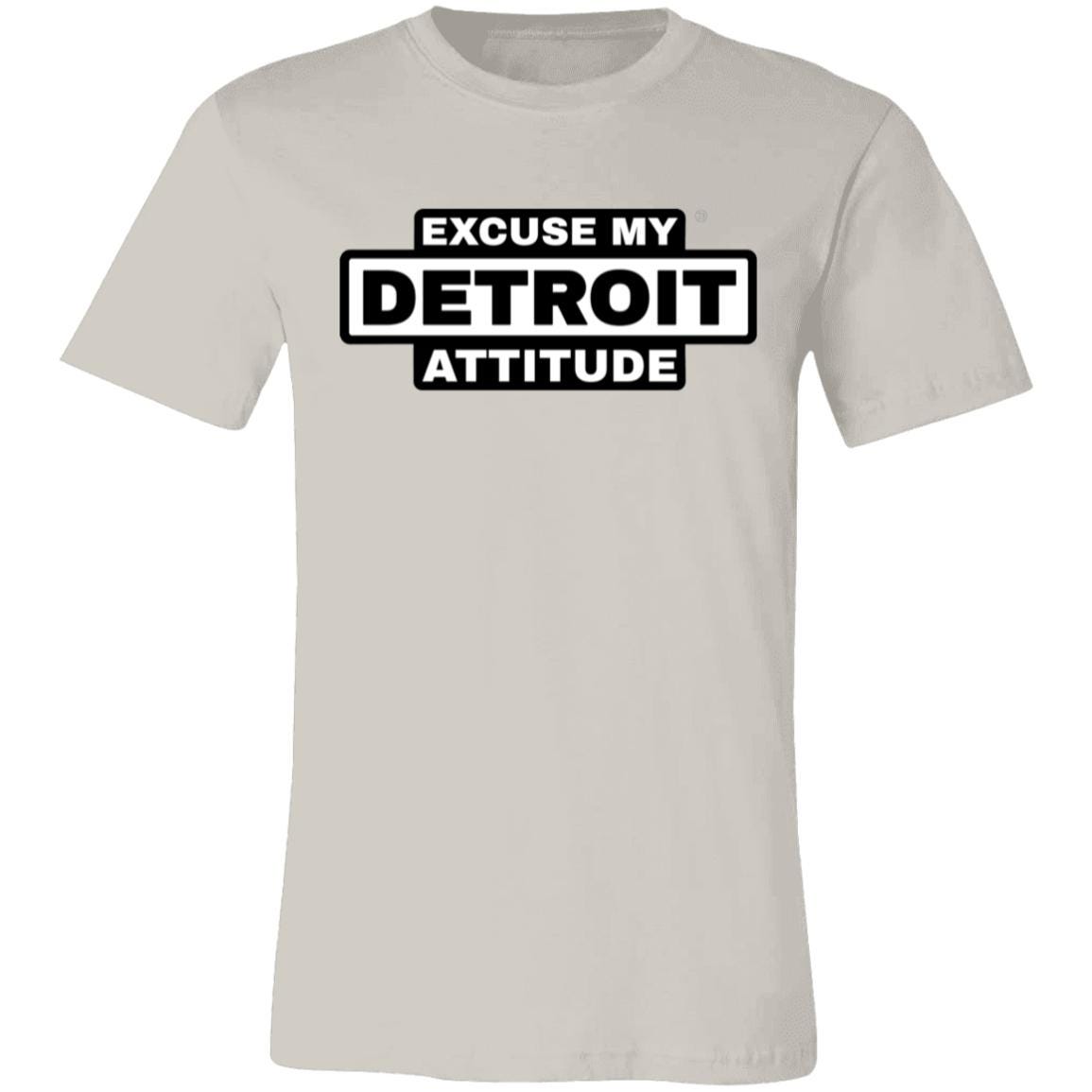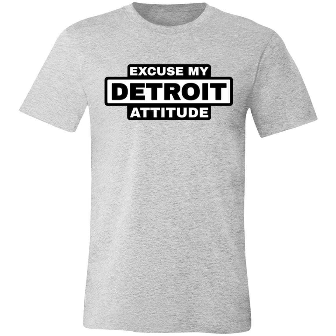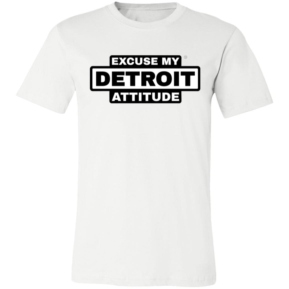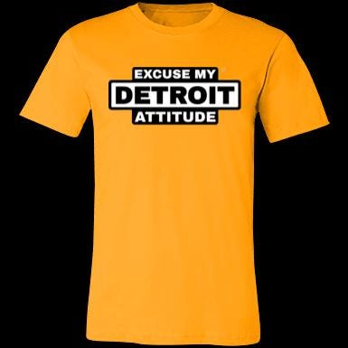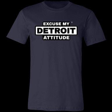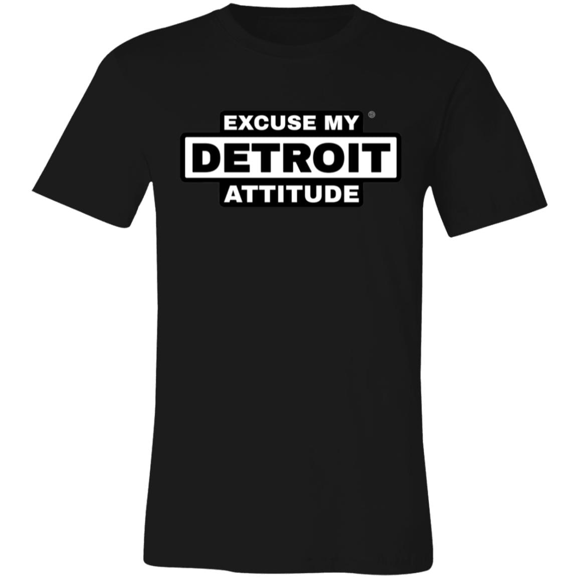 Excuse My Detroit Attitude high-contrast Premium T-Shirt.: 4.2 oz.: 100% Airlume combed and ring spun cotton.: Pre-shrunk.: Retail Fit - Unisex.: Machine wash cold; Tumble dry low