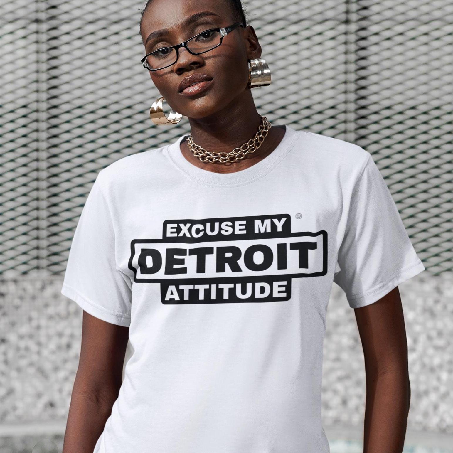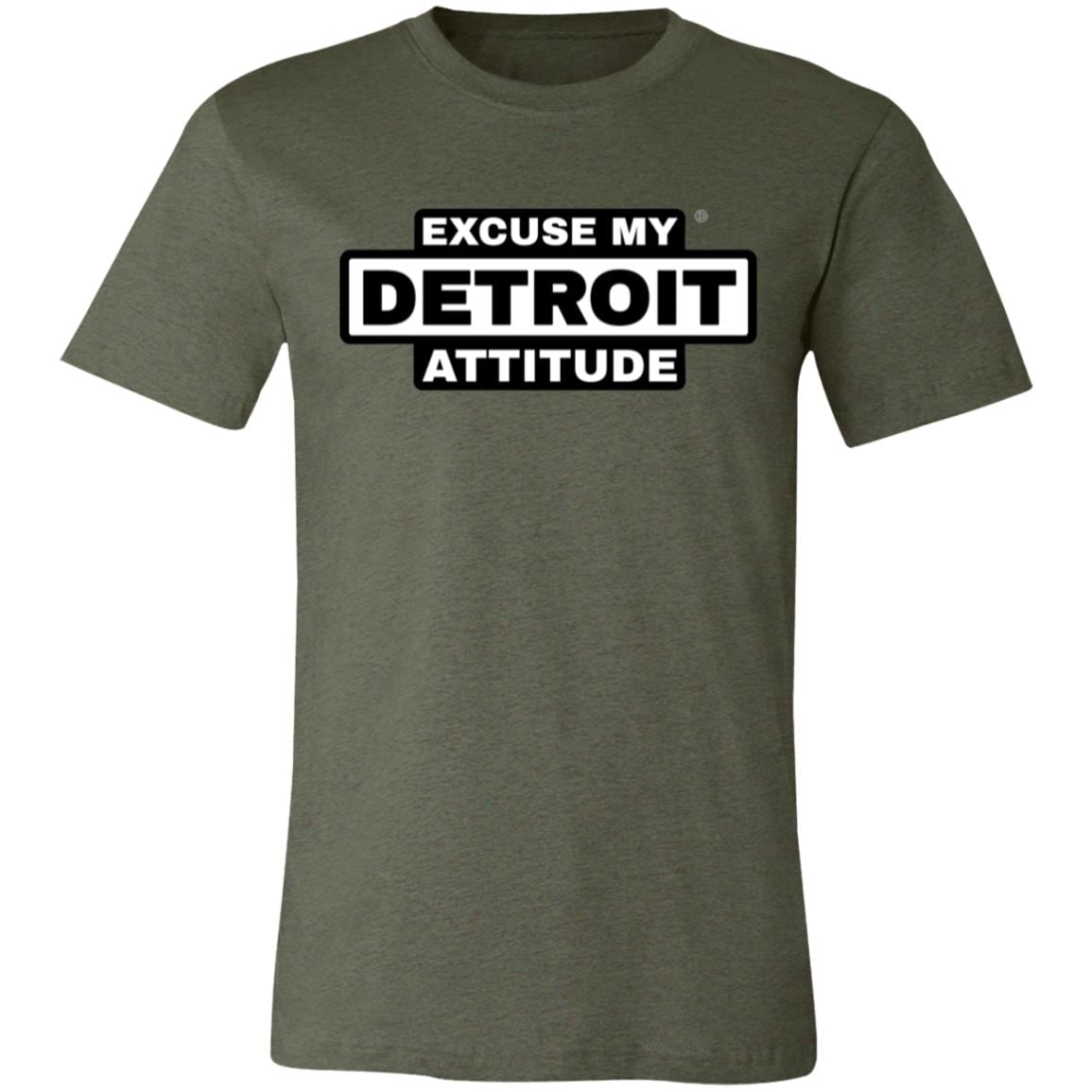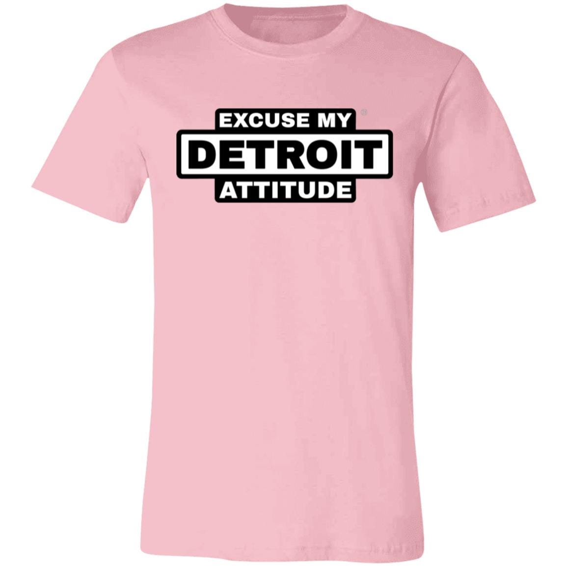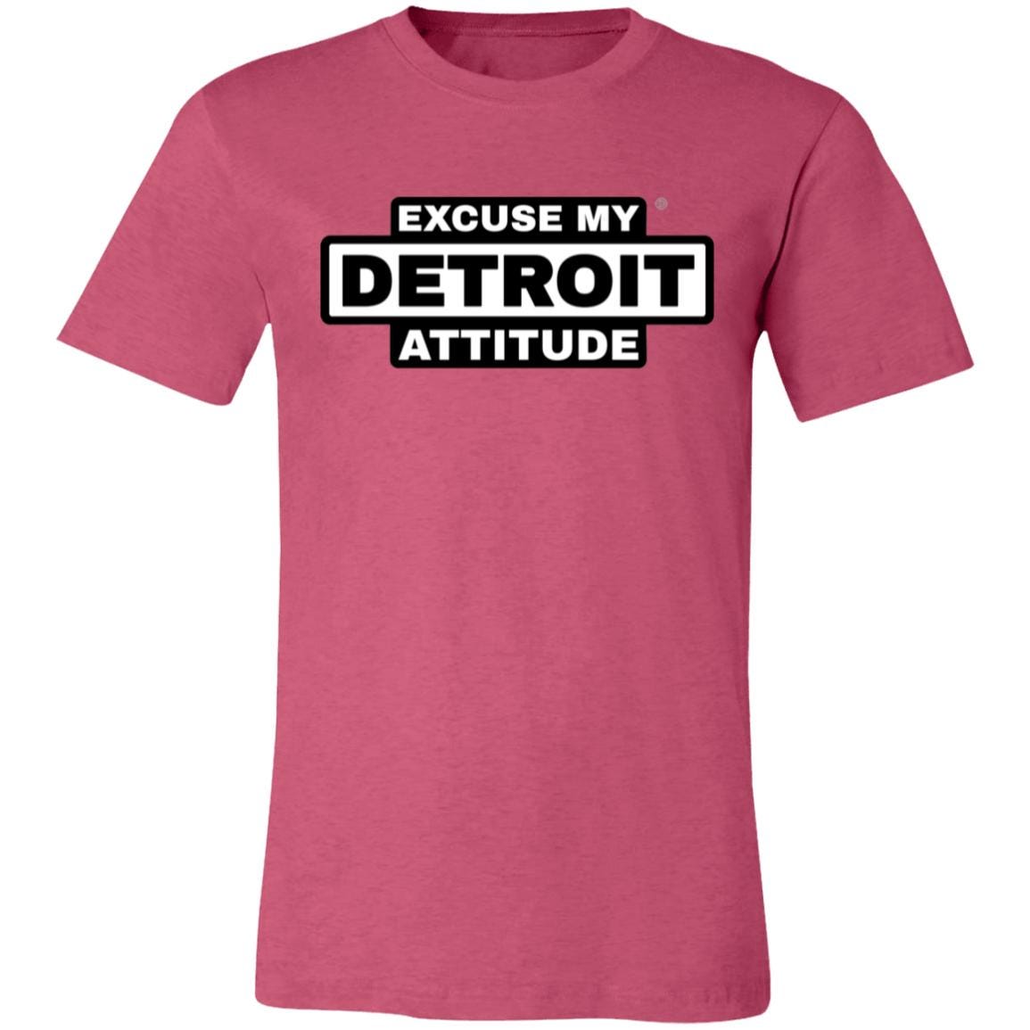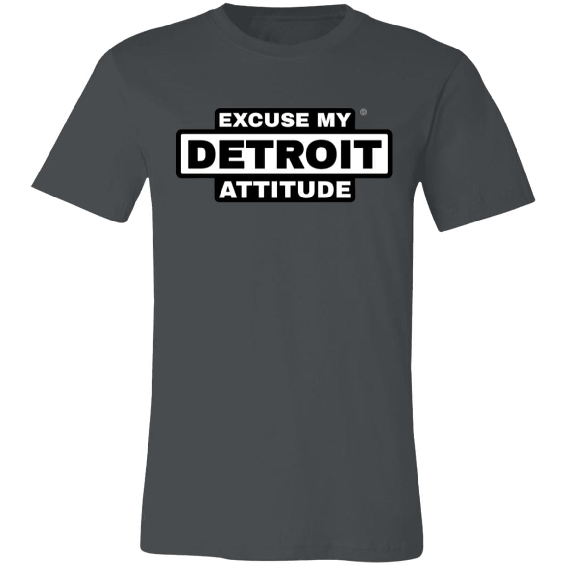 Excuse My Detroit Attitude high-contrast Premium T-Shirt.: 4.2 oz.: 100% Airlume combed and ring spun cotton.: Pre-shrunk.: Retail Fit - Unisex.: Machine wash cold; Tumble dry low