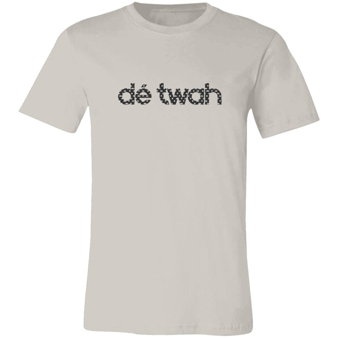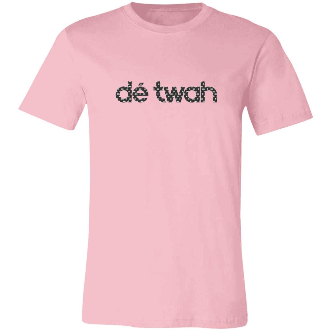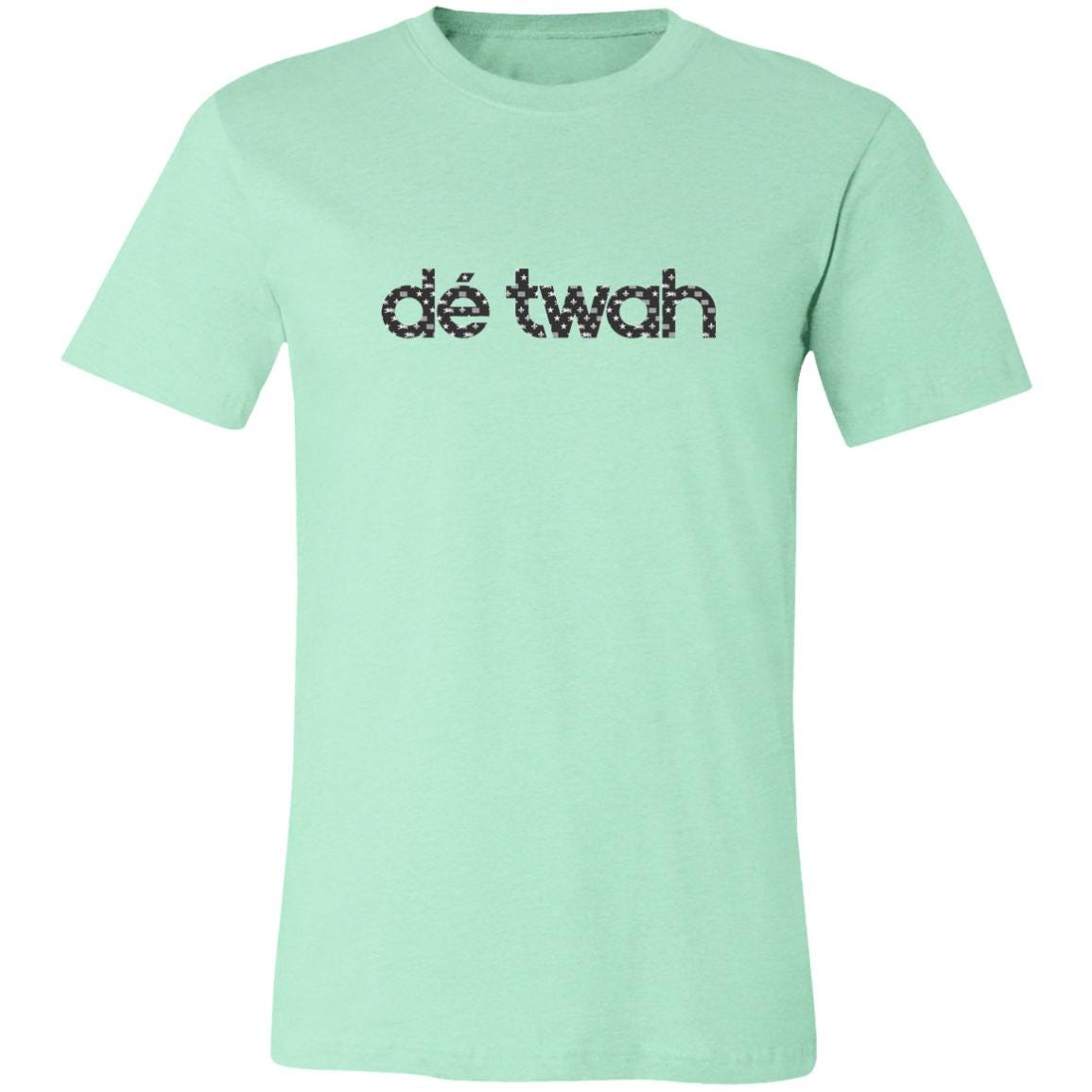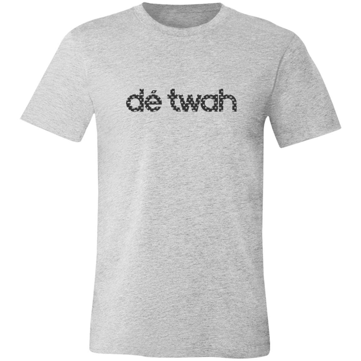 Dé Twah Premium Cotton t-Shirt features a mosaic pattern of elements of the Detroit flag inside the original lettering